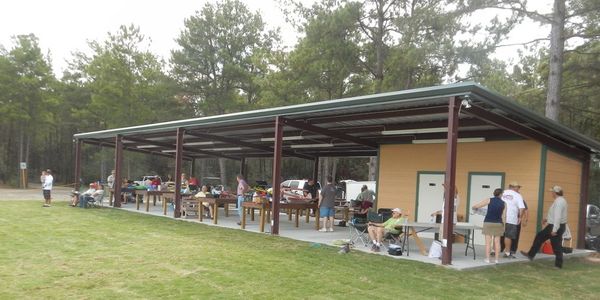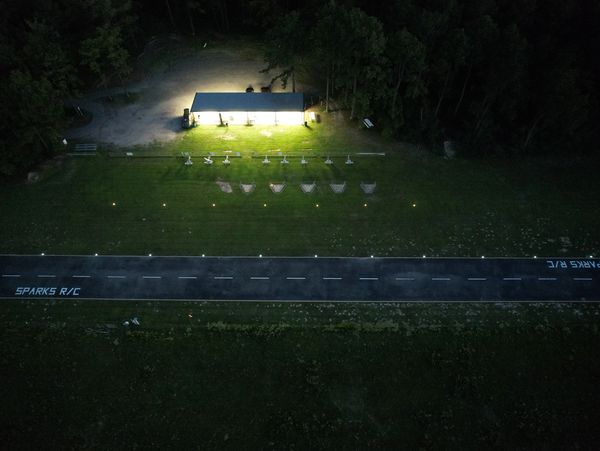 The field has recently been upgraded with a 450' x 28' paved center section. The whole field is nearly 1000' long and over 100' feet wide. The grass section is irrigated and mowed weekly. The gated field is generally open to certified members and their guests during daylight hours. There are men’s and women’s restrooms onsite as well as water, electricity and lighting under our 80’X25′ covered pit area. The field has five protected flying stations, more than a dozen tables, and a long chain-link fence designed to limit accidental spectator access to the runway.