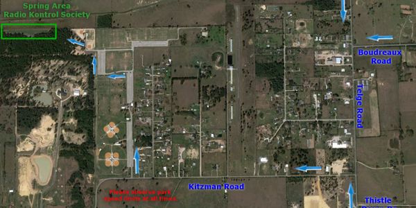 The SPARKS RC Club flying field is located within A.D.Dyess Park, a 113 acre facility which is part of the Harris County Precinct 3 family of recreational facilities. Directions to the field which is located at the far northwest end of Dyess Park, 16822 Kitzman Rd, Cypress, TX 77429.
